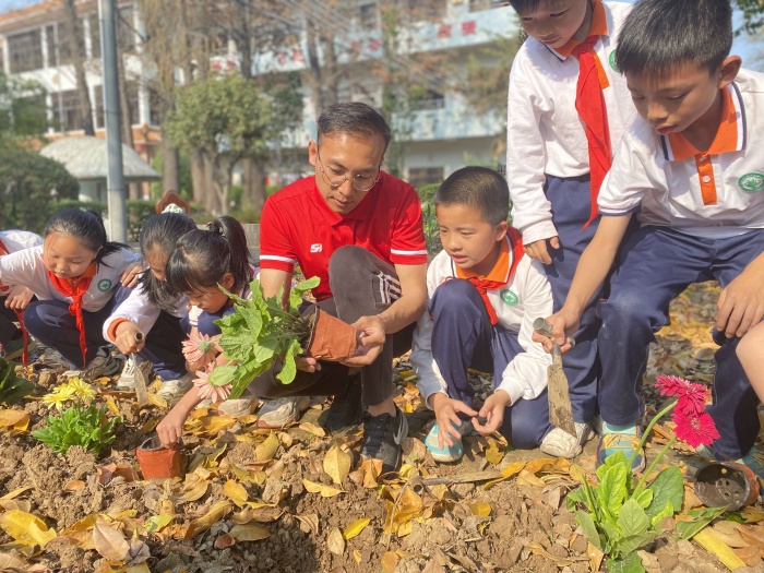 少先隊員們首先走進勞動基地,一起種下美麗的非洲菊。同學們有的揮舞鐵鍬開挖泥坑,有的幫忙扶植花苗,有的提水灌澆花......經過共同的努力,數十棵非洲菊牢牢扎根于校園勞動基地之上,為春日的校園增添了一份生機,一抹盎然的春意。