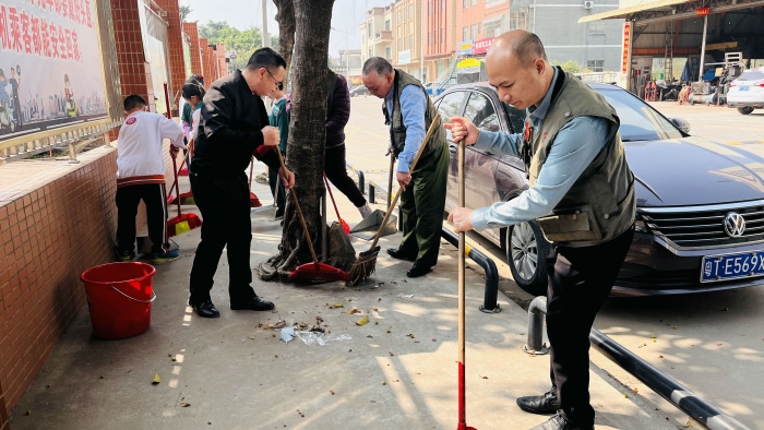 “志愿行動,愛護環(huán)境”。退役軍人紅旗志愿服務隊員和蟠龍小學師生代表進行了清掃校園周邊環(huán)境衛(wèi)生志愿活動,大家統(tǒng)一身穿紅馬甲,化為三月街頭的一抹暖陽。大家以親身實踐,體會到了愛與奉獻的內(nèi)涵,把愛國情感轉(zhuǎn)化為具體的行動之中,并把這種服務精神傳承下去。