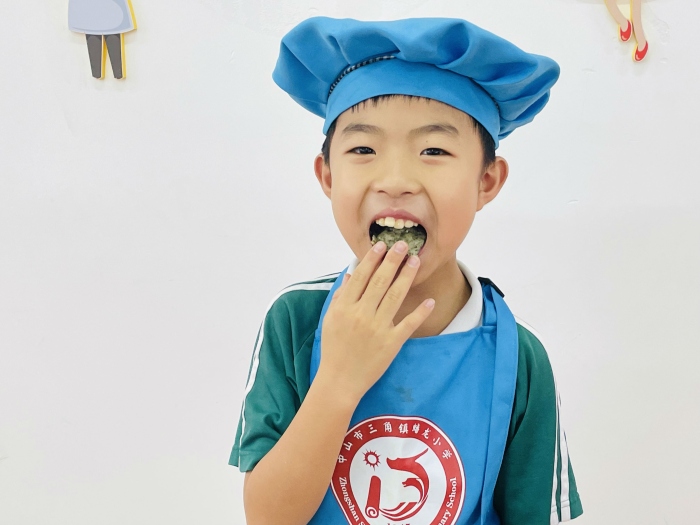 不一會兒工夫,經過蒸制,一個個油綠如玉、糯韌綿軟、清香撲鼻的青團就誕生了,把課堂裝扮得綠意盎然,艾香四溢。大家交流著做青團的感受,開心地品嘗自己的勞動果實。“這是我第一次親手制作青團,能和老師同學們一起上實踐課特別開心,我不僅學會了這道清明傳統美食的制作方法,還了解了清明時節的民俗文化,成就感滿滿。”一位同學開心地說道。