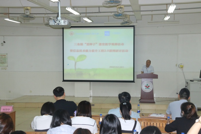 中山市教育教學研究室何晉中主任、中山市中小學教師能力提升工程2.0辦公室吳寒冬主任、廣東能龍教育股份有限公司副總裁董那其雅女士、三角鎮教育和體育事務中心段子元主任、梁文副主任、教研員袁震老師、吳萍老師、三角小學陳見洪校長等領導,以及三角鎮各兄弟學校教師代表近100人參與本次研討活動。