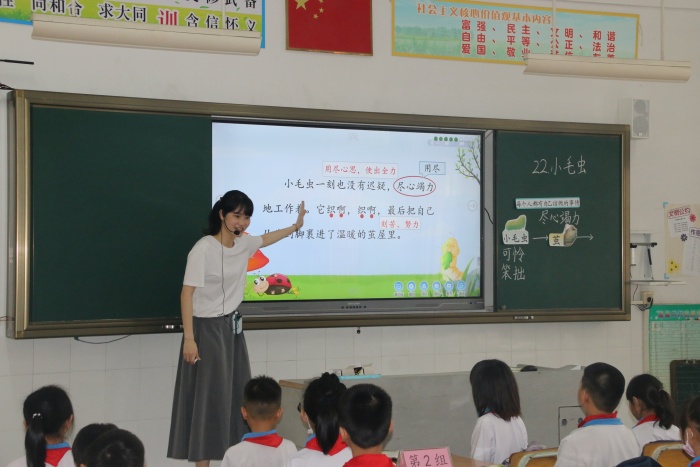 語文科組李小莉老師帶領二(5)班的學生進行《小毛蟲》課例展示。李老師充分利用“愛種子”平臺,通過圈畫關鍵詞、關鍵句、多種形式讀的方法,引導學生掌握小毛蟲歷經的變化,感悟萬事萬物都有自己的規律,要盡心竭力地做好自己的事的道理。李老師執教的課例亮點頗多:自然大方的教學姿態、及時有效的教學檢測、適時恰當的說話練習、符合學生的分層作業都讓整節課變得豐富有趣。