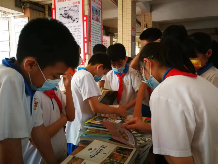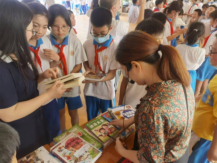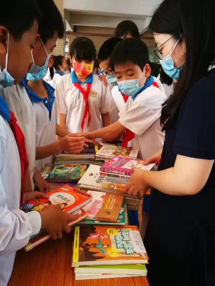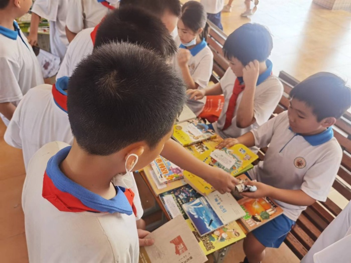 在夕陽的照耀下,購書活動拉開了帷幕。頓時,校園一下子沸騰起來,一樓大堂更是熱鬧非凡,一個個“小小的書店”開張啦,商店里的書本擺放得整整齊齊,琳瑯滿目,《尼爾斯騎鵝旅行記》《雷鋒的故事》《甜美之夜》......真是應有盡有。