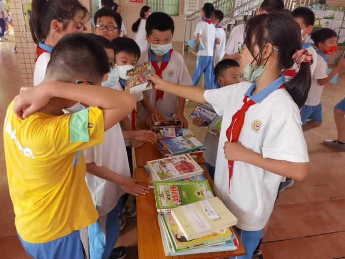 為培養學生交際能力和動手能力,引導學生樹立勤儉節約、團結合作、共同分享的意識,中山市三角鎮三角小學于4月29日下午在一樓大堂舉辦2022年讀書節系列活動之“跳蚤書市”活動。