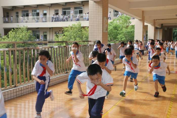 為了實(shí)施好這次演練,學(xué)校制定了詳細(xì)的消防疏散演練方案,對各班疏散的路線及每位班主任老師的職責(zé)、每層樓梯口值班老師的職責(zé)、疏散路線指揮員的職責(zé)等內(nèi)容都作了明確的規(guī)定。演練開始前,各班主任給學(xué)生介紹了逃生注意事項(xiàng)和方法。下午4點(diǎn)正,急促的警報(bào)聲響起,各班同學(xué)在班主任的有條不紊組織下,彎著腰,重心盡可能降低,用毛巾捂住口鼻,按照事先規(guī)劃好的逃生路線,快速、有序地向操場撤離。監(jiān)管樓梯拐角處的老師,早已到位,不停地提醒著學(xué)生們要注意安全。等同學(xué)們到了操場,各班迅速清點(diǎn)人數(shù),逐層上報(bào)給學(xué)校。