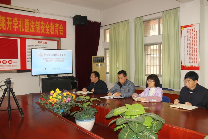 學校通過直播的方式為全體師生開展2021學年第二學期開學典禮暨法制安全教育會。