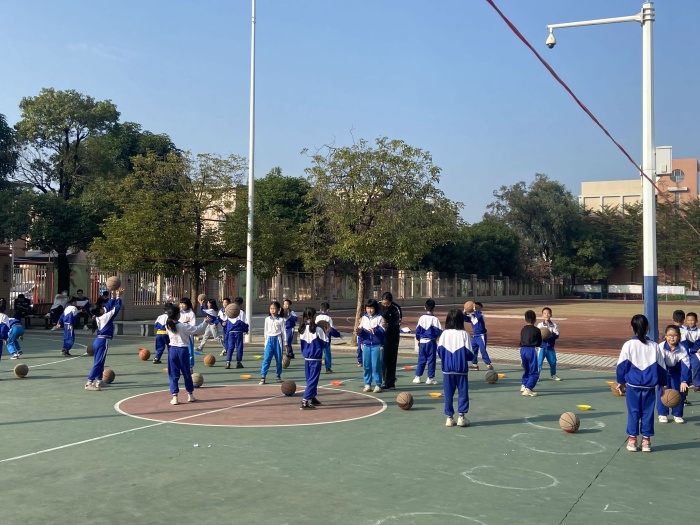 三角中心小學何潔華老師展示的是《籃球雙手胸前傳接球》。何老師從學生的角度出發,設計了不同的練習方法及游戲,讓學生更好地掌握籃球雙手胸前傳接球的動作要領。