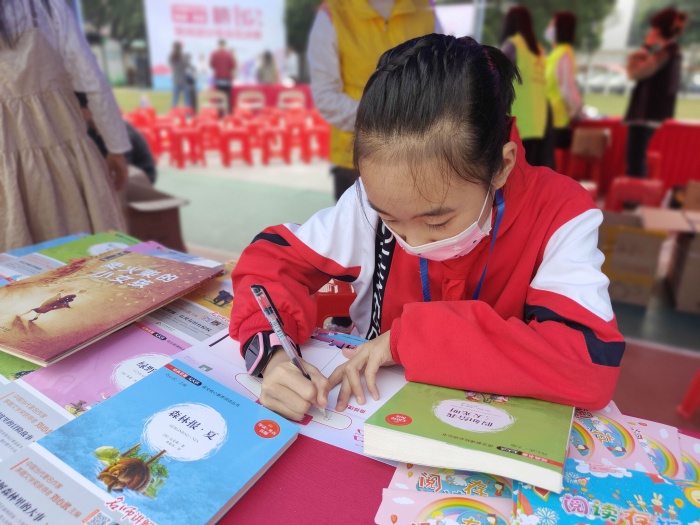 曬書會上,陳列著琳瑯滿目的圖書供孩子們交換,種類繁多,涵蓋散文、小說、詩集、童話、勵志圖書等等,多元化的書目吸引著眾多的孩子圍在曬書書攤前觀看,形成了一道別致亮麗的風景。同學們把自己喜歡的書拿出來,相互推薦,相互交換,分享讀書樂趣。他們臉上洋溢著滿足與快樂的笑容,整個活動現(xiàn)場蕩漾著濃濃的書香。同學們都陶醉在書籍的海洋里,自由自在地快樂遨游……三角小學“百草閣”和“悅讀閣”兩個書攤分別獲得了“優(yōu)秀書蟲獎”和“最強分享獎”兩項榮譽。