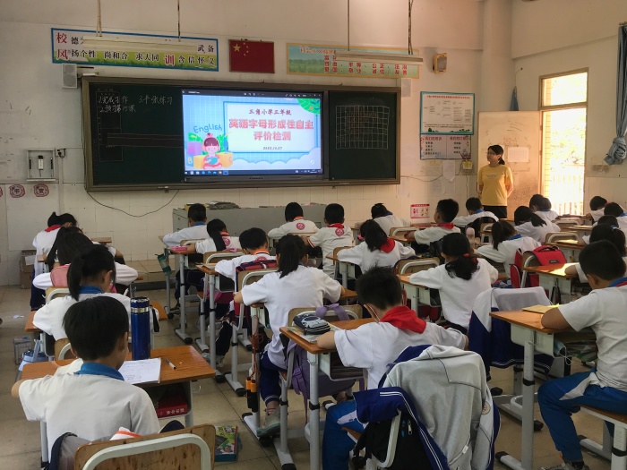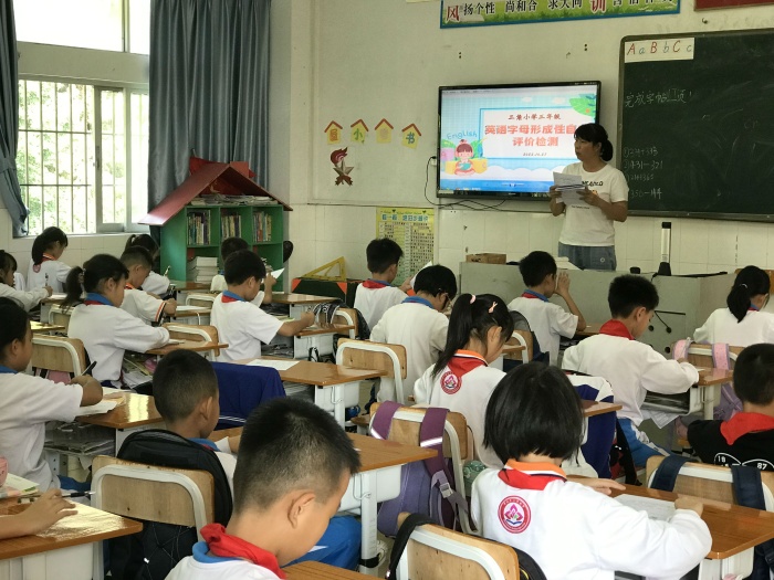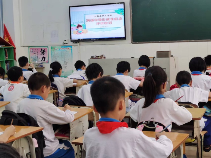 為了使學(xué)生能熱愛并規(guī)范使用英語字母,正確認讀和書寫26個字母,了解字母在單詞中的基本讀音,幫助學(xué)生形成語音意識,夯實學(xué)生的英語學(xué)習(xí)基礎(chǔ),培養(yǎng)英語學(xué)習(xí)興趣。10月27日下午,三角鎮(zhèn)三角小學(xué)開展了三年級英語字母形成性自主評價檢測活動。
