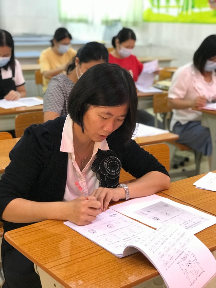 檢測過程中,同學(xué)們坐姿端正,聚精會神,專注書寫,認真答題。大部分學(xué)生書寫較為規(guī)范,字跡工整,卷面整潔,掌握較為牢固,但仍有少部分學(xué)生對26個字母應(yīng)用不夠到位,理解不夠透徹,需要教師在教學(xué)中不斷地糾正和督促。隨后,全體英語科組教師對試卷進行了詳細批閱。最終,從各班選出十名“英語小達人”。