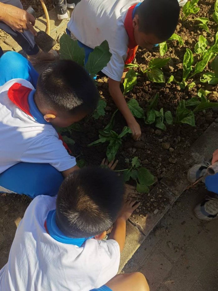 勞動是艱辛的,但阻擋不住同學們勞動的熱情。每一個孩子都忙得不亦樂乎,雖然臉上滲滿了豆大的汗珠,手上腳底都沾滿了泥土。對于初次參加勞動教育的同學,意義更大,他們不僅學會了使用鐵鏟和鐵鍬,了解了如何松土、培土,播種、種植澆水,并從中明白了“勞動最光榮”的真正含義。