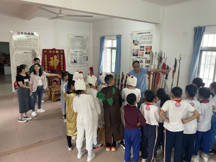 為促進學校間的藝術交流,2023年4月18日下午,中山市三角鎮三角小學與中山市三鄉鎮大布小學開展了校際非遺藝術展示活動,在三角小學一樓階梯室分別介紹并展示了各自學校特色文化,促進兩校藝術水平的提升。