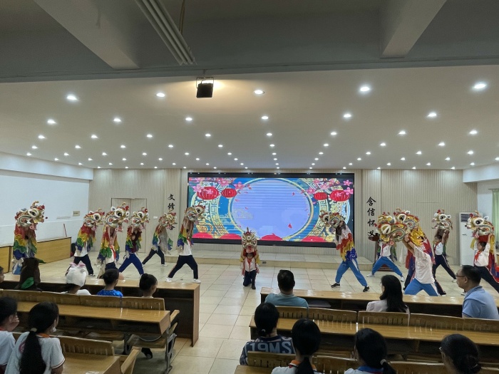 活動先由三角小學麒麟隊帶來精彩節目——《舞與麟比》。伴隨音樂的響起,象征著吉祥如意的麒麟,時而騰空躍起,時而匍匐前行,動靜變化、姿態萬千。三角小學麒麟隊的同學們揮灑激情和汗水,為三角小學和大布小學的同學們帶來了精彩的視覺盛宴,贏得現場領導及來賓的陣陣掌聲。麒麟舞融音樂、舞蹈、工藝美術、雜技于一體,既具有美學的欣賞價值,又有文藝的、宗教的、民俗的、歷史的研究價值,這是祖先留給華夏子孫的一份寶貴財產。
