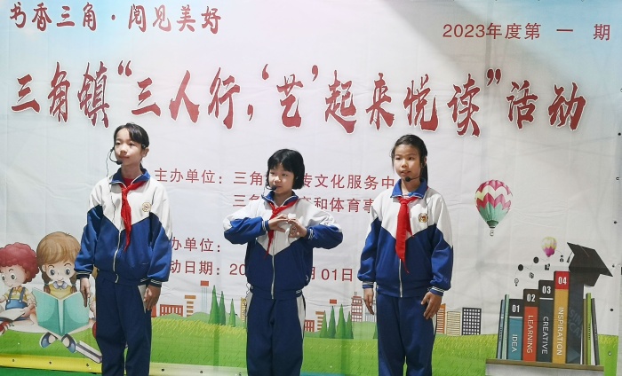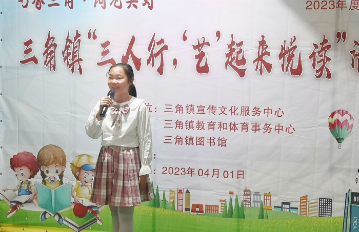 4月1日,由三角鎮宣傳文化服務中心、三角鎮教育和體育事務中心、三角鎮圖書館聯合主辦的2023年度“三人行,‘藝’起來悅讀”活動第一期如約在中山市文化館三角鎮分館舉行。三角小學海鷗文學社的十多位社員和家長們同臺競技,一起“藝”起來,讓悅讀越精彩。
