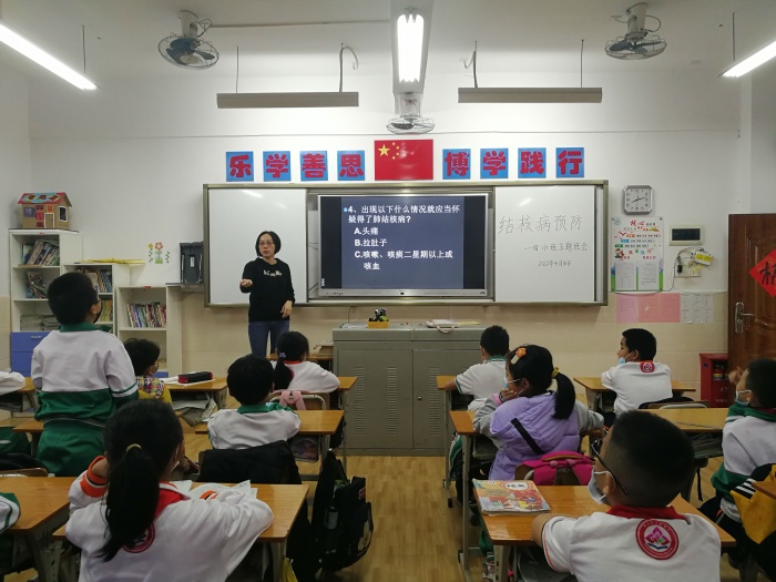 春季是各類傳染病的高發季節,學校又是人群高度密集的場所,極易發生流行性傳染病。為進一步增強學生預防春季傳染病的意識,保障學生健康成長,4月19日,三角鎮沙欄小學積極開展以“預防肺結核,你我更健康”為主題的班會課活動。