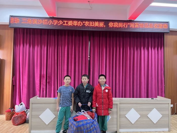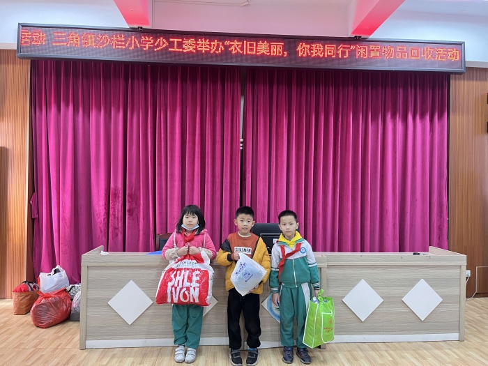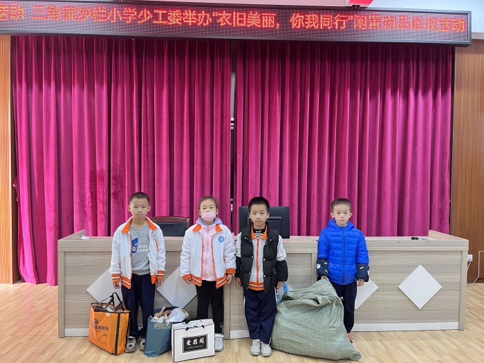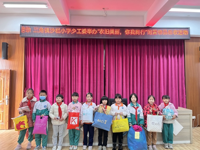 為貫徹習近平生態文明思想,響應中山市開展的“青年拾分愛——衣·物銀行”活動的號召,進一步培養學生資源回收利用的觀念,提高學校隊員的社會責任感。12月31日,三角鎮沙欄小學少工委舉辦“衣舊美麗,你我同行”閑置物品回收活動。