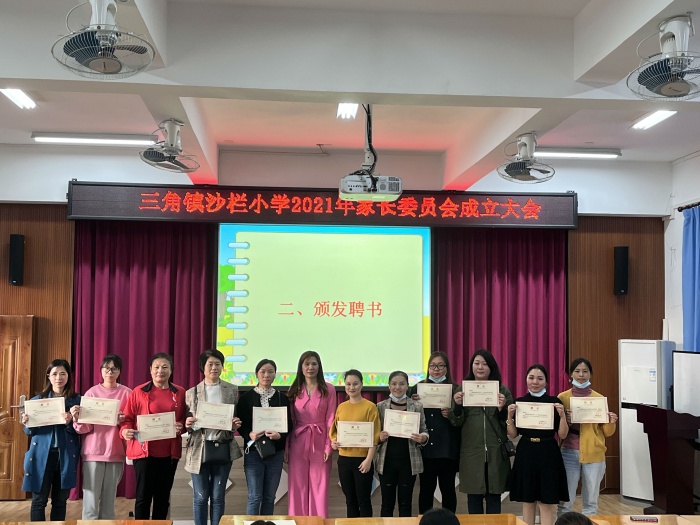 首先,由沙欄小學崔煥英校長作《家校共育 未來可期》的工作報告,崔校長向家委會暢談這一年來學校的各項工作及今后學校發展工作計劃。為了使家校聯系更加緊密,為了孩子得到更好的發展與成長,希望家委們能群策群力。崔校長代表學校向全體家長委員會成員宣讀《沙欄小學家委會章程》。接著,杜老師宣布了班級、年級以及校級的家委會名單,崔校長為各位委員頒發了聘書。家委會陳群英會長代表全體委員作了發言。她表示,學校家委會一定會盡心盡力,為學校的發展出謀劃策,并提供力所能及的支持和幫助,為孩子們的快樂成長、為加強學校與家長之間的交流溝通發揮作用。會議最后,一起共建了沙欄小學2021家委微信群。