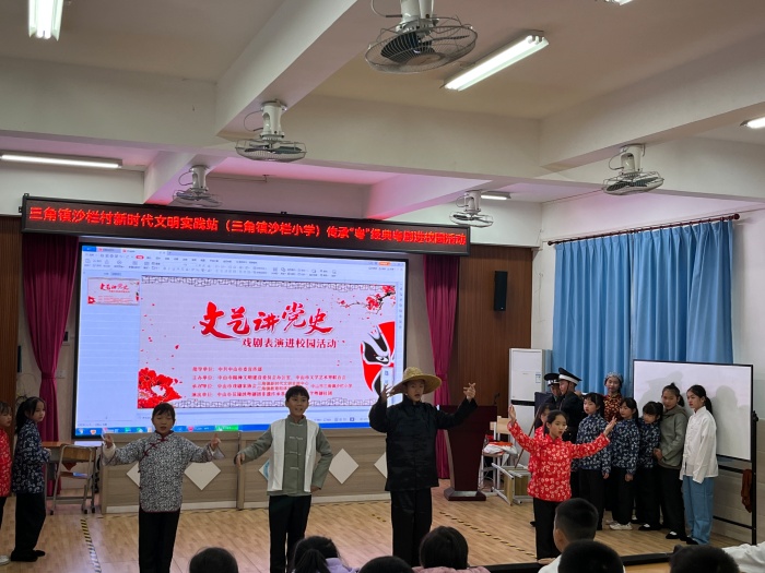 為了進(jìn)一步展現(xiàn)中華優(yōu)秀傳統(tǒng)文化,豐富校園生活,培養(yǎng)孩子們的戲曲素養(yǎng),提高學(xué)校師生對(duì)粵劇文化的了解,3月28日下午,中山市花錦繡粵劇團(tuán)非遺傳承基地的老師們,為三角鎮(zhèn)沙欄小學(xué)師生們帶來了一場(chǎng)精彩紛呈的視聽盛宴!讓學(xué)生看粵劇、聽粵劇、學(xué)粵劇、親身體驗(yàn)粵劇。