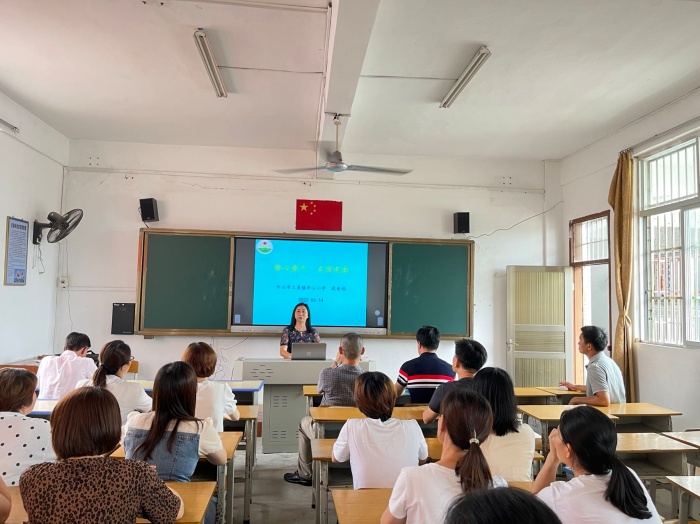 接著是專題講座。中山市三角鎮中心小學段美娟副校長以“靜心聚氣,點滴收獲”為主題開展了講座。講座圍繞“點滴成績”和“點滴感悟”兩大方面進行匯報。段副校長分別闡述了三角鎮中心小學在上學期期末所取得的成績、2021年度教師教學教研成績獲獎情況和學校對教學教研實驗的重視,還介紹了學校的優秀教師在各領域所取得的優秀成績。最后,段副校長總結了“靜氣,是教學教研的本色”。
