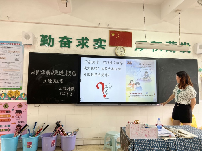 《中華人民共和國(guó)民法典》是新中國(guó)第一部以法典命名的法律,開(kāi)創(chuàng)了我國(guó)法典編纂立法的先河,具有里程碑意義。為了更好地讓《民法典》走到廣大師生身邊、走進(jìn)廣大師生心里、走進(jìn)校園,增強(qiáng)青少年法治意識(shí),2022年6月6日下午,三角鎮(zhèn)中心小學(xué)開(kāi)展“民法典進(jìn)校園”主題班隊(duì)活動(dòng)。