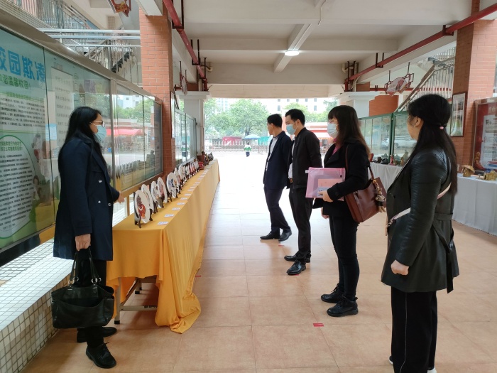 首先,督導組視察了校園的傳統文化建設,參觀了儒家文化長廊,欣賞了陶藝文化專區的師生作品、宣傳欄的學生剪紙作品、孔子文化活動剪影等。校園里處處滲透著儒家傳統文化元素,每一件作品都充滿著濃濃的中國風,給督導組專家留下了深刻印象。