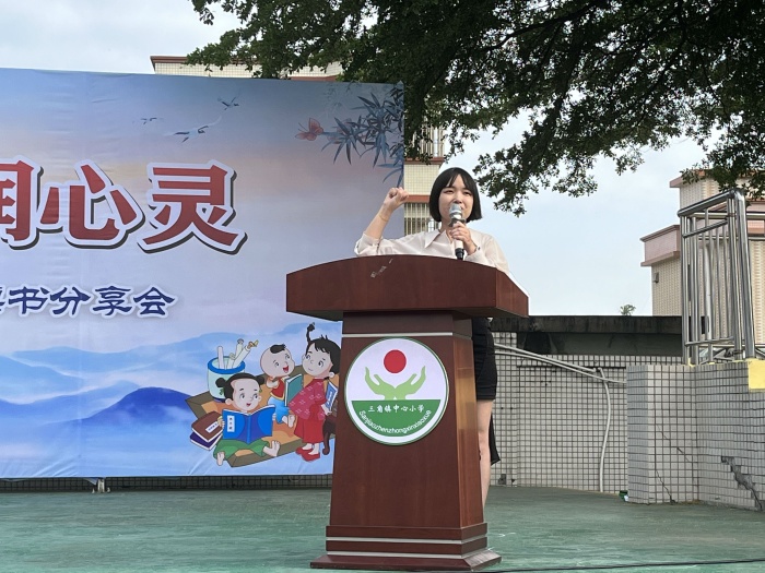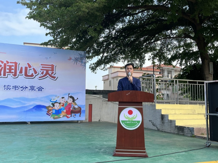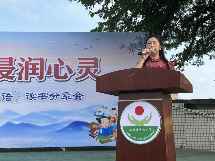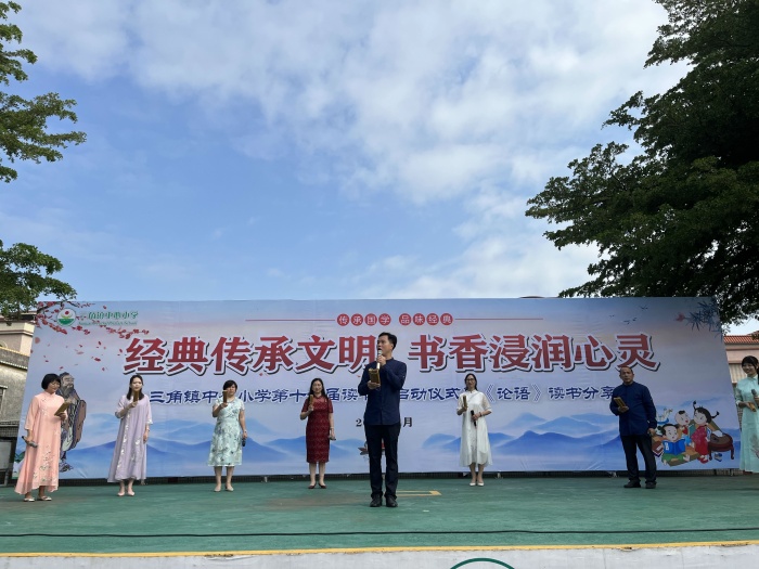 主持人黃寶盈主任宣布三角鎮中心小學“經典傳承文明 書香浸潤心靈”第十七屆讀書節啟動儀式暨《論語》讀書分享會正式開始。