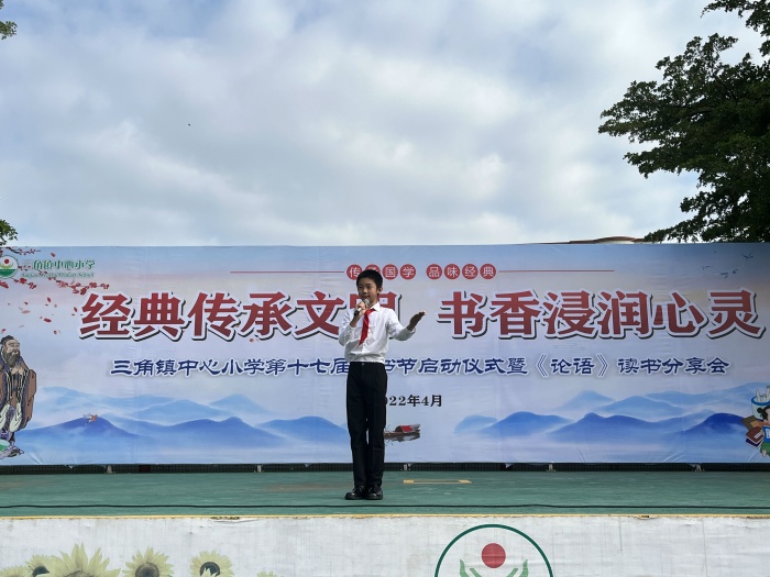 春山含笑,經典悠長,三角鎮中心小學漫書香。為豐富課改內涵,打造書香校園,4月11日上午,三角鎮中心小學舉行了第十七屆讀書節啟動儀式暨《論語》讀書分享會。