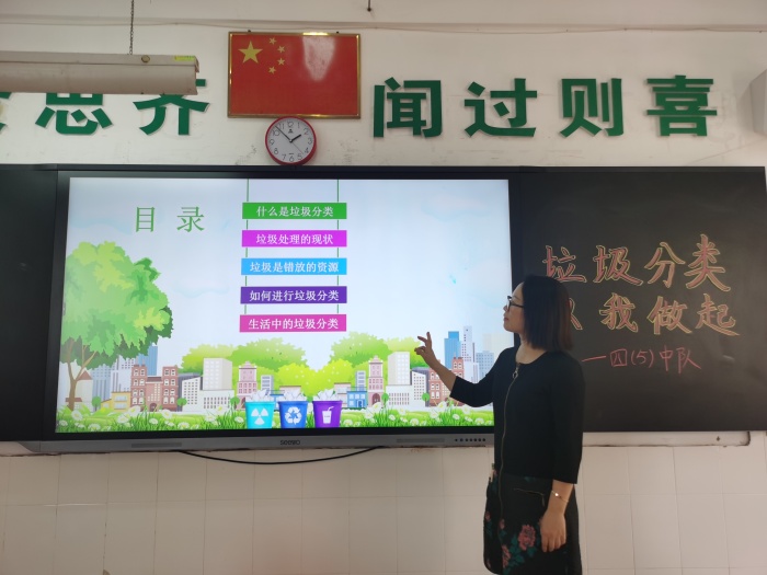 隊(duì)課活動(dòng)中,老師們?cè)敿?xì)從以下五個(gè)方面進(jìn)行講解:1.什么是垃圾分類;2.垃圾處理的現(xiàn)狀;3.垃圾是錯(cuò)放的資源;4.如何進(jìn)行垃圾分類;5.生活中的垃圾分類。老師們通過此次隊(duì)課深入地詮釋了“垃圾分類一小步,低碳生活一大步;呵護(hù)我們的環(huán)境,與萬物共享尊榮”的環(huán)保理念。