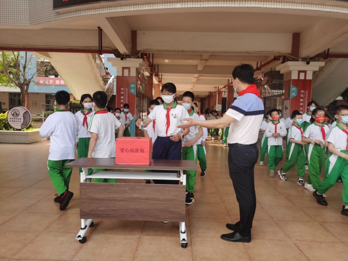 3月15日下午,晴空如洗,同學們來到大堂,整齊有序地把準備好的零用錢一一投入捐贈箱。你一元、我五元、他十元……當孩子們用稚嫩的小手,認真且溫暖地將自己的零花錢投入募捐箱那一刻,“愛的種子”就在他們心中生根發芽... ...同學們的點滴愛心,點滴奉獻,終將匯聚成幸福的暖流,流淌于每個人的心間。
