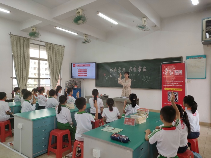 活動的第三個環節:平臺資源助成長。社長黃寶玲老師播放了學習強國平臺上的視頻資源《典籍里的中國 論語》,讓孩子們對孔子及其弟子窮其一生所追求的仁愛理想世界有了一個更系統更清晰的認識,既拓展了見識,又提高了民族文化的自豪感和認同感??赐暌曨l后,黃老師還根據視頻內容精心設計了學習強國線下挑戰答題環節,考查孩子們對視頻內容的掌握程度。孩子們積極參與搶答,現場氣氛活躍,把本次讀書分享會活動推向高潮。