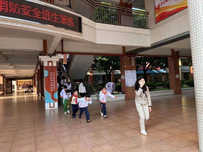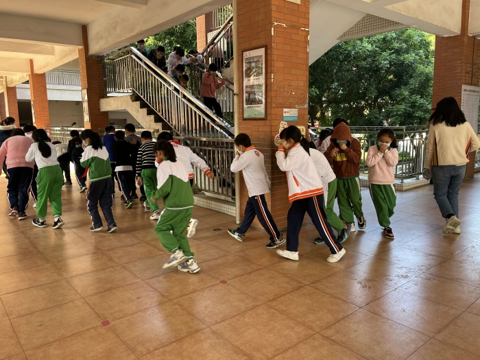 隨著急促的警報聲響起,廣播發出逃生指令,各班學生在老師們的帶領下迅速就近從教室前后門跑出。樓道上,學生們彎著腰,用手帕捂住口鼻,彎腰前行,沿著指定路線快速疏散,有序地撤離到安全地帶,并按班級快速站好。班主任迅速清點本班學生人數,向負責行政匯報各班應到和實到人數,確保每一名學生都已安全撤離教學樓。全校1763名師生在短短的2分鐘內全部按照預定的疏散路線,安全撤離到指定地點。整個疏散過程中,沒有發生擁擠推搡現象,過程井然有序,真正地做到了快、靜、齊。