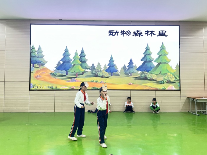 同學們精心準備排演,上演了《陶罐和鐵罐》《白雪公主》《狐假虎威》等精彩劇目,傲慢的鐵罐在御廚房里對同伴們指手畫腳,讓人恨得牙癢癢;美麗的皇后對著魔鏡計劃著她那邪惡的計謀;狡猾的狐貍在老虎面前洋洋得意……將經典的童話故事從課本搬上舞臺,學生們的精彩演出,贏得了臺下觀眾陣陣掌聲。看著舞臺上一個個鮮活的人物,臺下的同學們時而屏息凝神,時而開懷大笑,時而掌聲雷動,無不沉浸在每場演出的特有氛圍中。
