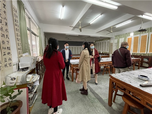 接著,調(diào)研組一行參觀了學(xué)校書法室,在周學(xué)明老師的指引下,調(diào)研組專家欣賞了一幅幅自成風(fēng)格的書法作品,學(xué)生們對書法的熱愛和較高的書法水平讓專家們嘖嘖稱嘆。
