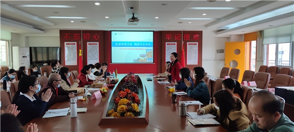 課后,曾青竹老師進(jìn)行了說課,李惠霞主任也向?qū)<医M具體匯報了學(xué)校開展的優(yōu)秀傳統(tǒng)文化教育工作的一些舉措。李主任從誦讀國學(xué)經(jīng)典、探索傳統(tǒng)文化特色教學(xué)、多學(xué)科融合推進(jìn)等三大方面進(jìn)行匯報,同時,也提出學(xué)校在推進(jìn)傳統(tǒng)文化教育中存在的困惑。