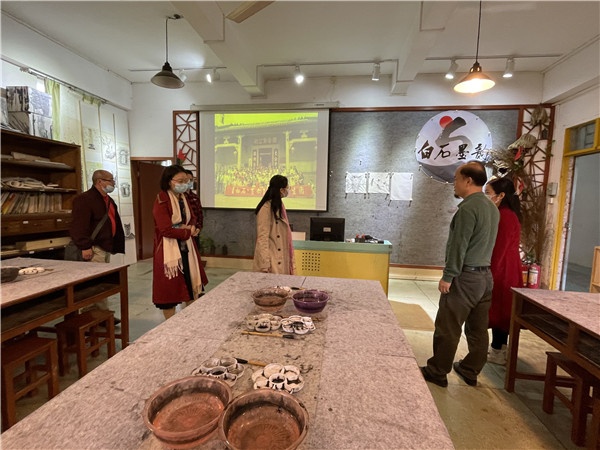 首先,調(diào)研組參觀了學(xué)校的水墨畫工作室。工作室主持人魏勝君老師向調(diào)研專家組展示了墨韻飄香的水墨畫作品并介紹“白石墨韻”的發(fā)展史,據(jù)魏勝君老師介紹,“白石墨韻”八年來一直致力于公益親子水墨活動,定期開展水墨戶外寫生活動,探尋三鄉(xiāng)古村古巷,了解名人風(fēng)尚,觸摸古跡之下的厚重歷史,感受濃濃的鄉(xiāng)情和厚重的文化底蘊(yùn),通過親子美育的形式傳承中華優(yōu)秀傳統(tǒng)文化。“水墨畫”教研工作得到了專家組的高度點贊。