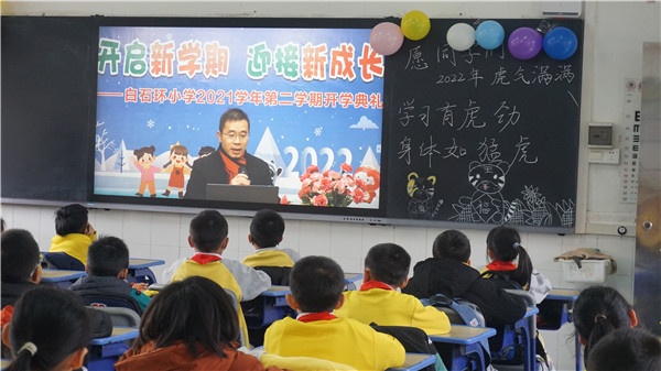 新學(xué)期,新氣象,新挑戰(zhàn)!為增強(qiáng)師生責(zé)任感和使命感,明確新學(xué)期的奮斗目標(biāo),營造濃厚的開學(xué)氣氛,2022年2月14日上午,三鄉(xiāng)鎮(zhèn)白石環(huán)小學(xué)開展“開啟新學(xué)期 迎接新成長”活動,迎接2021學(xué)年度第二學(xué)期開學(xué)日,全校師生在校門口喜收利是封,并于各班教室收看了劉世禮校長的新年寄語和思政第一課,以及由德育處主持的開學(xué)典禮。