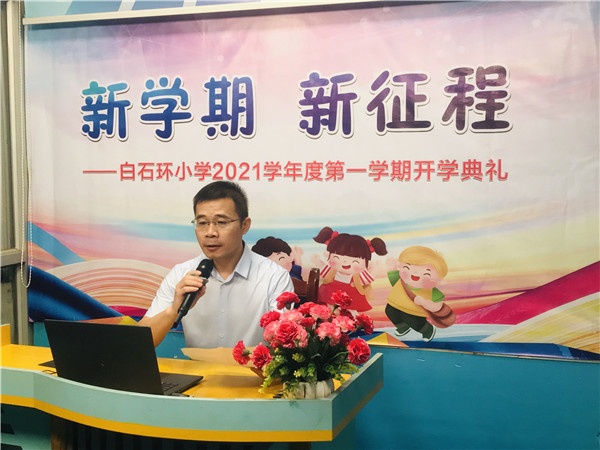 新學(xué)期,新氣象,新挑戰(zhàn)!為增強(qiáng)師生責(zé)任感和使命感,明確新學(xué)期的目標(biāo),營造濃厚的開學(xué)氣氛,2021年9月1日上午,三鄉(xiāng)鎮(zhèn)白石環(huán)小學(xué)舉行了2021年度第一學(xué)期主題為“新學(xué)期 新征程”的開學(xué)典禮,全校師生在各班教室收看了《開學(xué)第一課》,聆聽了劉世禮校長的新學(xué)期寄語和思政課,以及德育處主持的《開學(xué)健康安全第一課》。