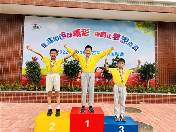 每個班設有大本營,椅子、膠凳都一一擺在拉線外圍,啦啦隊員們準備隨時吶喊助威。班主任帶著運動員到達各賽場。在班主任的有序組織下,運動員們馬上做好熱身運動,斗志昂揚。小小運動員們盡情揮灑汗水,享受運動帶來的激情和樂趣,在競技時展現出蓬勃的朝氣。