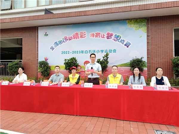 生命因運動精彩,體育讓夢想成真。為深入貫徹落實《學校體育工作條例》,增強學生的身體素質,促進學生全面發展,4月14日,三鄉鎮白石環小學舉行2022-2023年體育節田徑運動會。三鄉鎮教育和體育事務中心副主任馬駿、白石環小學家委會會長閆洪鴿、白石環小學家委會組織部長林劍波應邀參加了運動會開幕儀式并在主席臺就座。