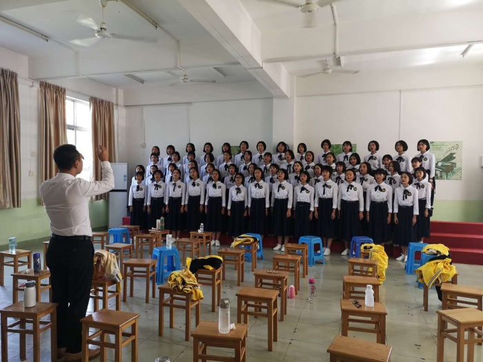 此次合唱比賽,充分體現了同學們的團隊協作精神和勤奮努力的優良作風。備賽之時,學校合唱隊經歷了近兩個月的緊張排練,付出了大量了時間與精力。終功夫不負有心人,合唱隊在比賽中取得了第二名的佳績。身穿白色制服的隊員們帶著自信的步伐登上舞臺,在黃高覺老師出色的指揮下,鋼琴手優美地敲響一個個琴鍵,臺上的小小歌唱者們完美發揮,姿態優雅的她們,以充滿著自信的臉龐配上那悠揚歌聲,每一句歌詞似乎都能深深打動在場觀眾和評委的心。臺上一分鐘,臺下十年功。自然流暢的表演,凝聚著老師和隊員們智慧與汗水。