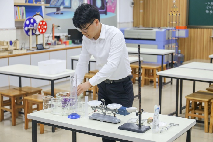 這離不開張劍杰老師對專業孜孜以求的精神。為了更全面的悟透小學科學教學的內容,張老師利用課余時間研讀了整個小學階段的12本小學科學教材以及小學科學課程標準,并對整個中學階段的物理、化學、生物、地理學科內容也進行了全面的學習、復習;為了引導學生更加科學嚴謹地開展實驗研究,張老師還把所有的中小學涵蓋的所有理化生實驗都進行了回顧與實操;為了上好一節課,張老師的教學設計往往數易其稿,試教多次。在一次次磨礪中,一步步成長,錘煉出了扎實的學科基本功和出色的課堂教學能力。