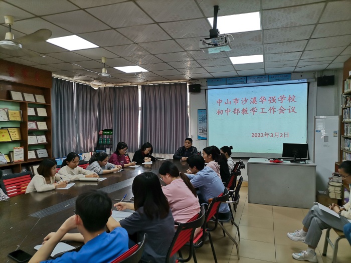 3月2日,華強學校教務處組織召開初中部教學工作會議,會議主要總結分析上學期教學情況,布置本學期的教學工作。