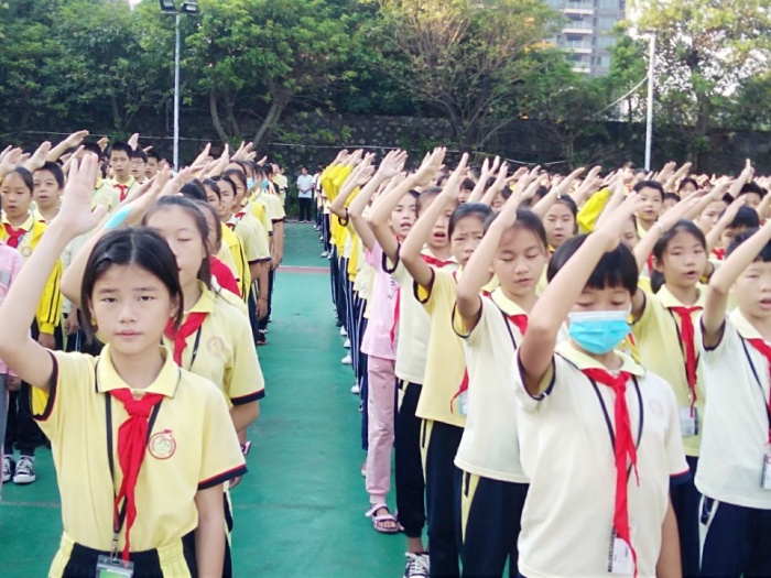 為慶祝中華人民共和國成立71周年,慶祝中國少年先鋒隊(duì)建隊(duì)71周年,教育引導(dǎo)廣大少先隊(duì)員聽黨話、跟黨走,用實(shí)際行動(dòng)把紅色基因代代相傳,增強(qiáng)少先隊(duì)員光榮感,華強(qiáng)學(xué)校結(jié)合本校少先隊(duì)實(shí)際情況,開展了“傳承紅色基因 爭做新時(shí)代好隊(duì)員”主題隊(duì)日活動(dòng)。