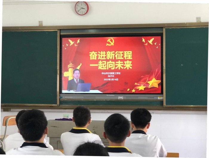 學校黨委書記、校長馮子川給同學們講授“奮進新征程,一起向未來”為主題的思政第一課,帶領全體師生回顧和學習國家主席習近平發表了二〇二二年新年賀詞,并從“冬奧盛會,拼搏成就自我”“絢麗人生,奮斗開創未來”“青春禮贊,使命致敬時代”三個部分為全體師生上課。馮子川表示,學校圍繞高水平中職學校建設展開各項工作,對接中山以及廣東“一核一帶一區” 和粵港澳大灣區區域經濟社會發展需求,以立德樹人為根本、服務發展為宗旨、促進就業為導向、內涵建設為重點、專業群建設為載體,產教融合、校企合作為手段,貫徹落實“三全六徑”育人理念,踐行五育并舉,培養全面發展的高素質時代新人,全面提升辦學水平、提高人才培養質量和服務發展能力。