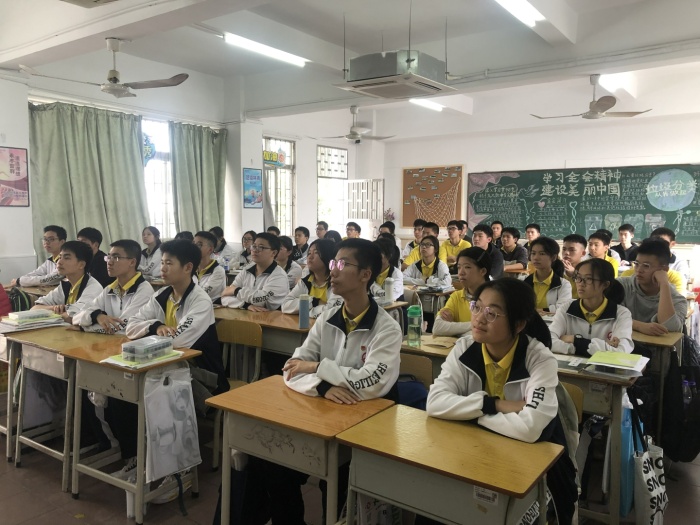 原本師生應該聚在一起,共同站在旗桿下,注視著五星紅旗緩緩升起……然而,因為疫情,沙溪理工學校全體師生通過線上觀看了整個線上開學典禮過程,內容包括升旗儀式、觀看防疫要求視頻、校長寄語等環節。