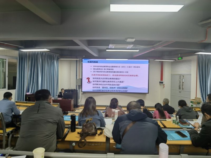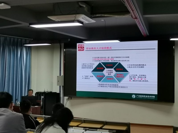 劉教授指出,職業教育具有職業準備性特征,既要注意職業崗位群和技術領域的導向性特征,又必須兼顧教育教學體系的規律性,必須貼近生產、工作實際教學,推行校企合作、工學結合的人才培養模式。課程分別從職業教育改革的新形勢新任務、廣州番職院專業建設的思路和做法、藝術設計專業群的建設方案介紹三方面展開講解。劉教授強調,職業教育目前面臨立德樹人、產教融合、適應現代學徒制及1+X制度、創新教學團隊及“雙高”建設等改革新形勢,專業群可以與地方產業相適應的專業設置與調整、校企合作機制、實施行動導向的課程改革模式、建設突出生產性和教學性相結合實訓基地、加強建設“雙師型”教師培養隊伍。廣州番職院專業群建設成為全國職業教育的示范、技術技能創新的核心引擎,也是學校“雙高”建設的“樣板工程”,為學校建設高水平專業群工作有效實施指明了方向,并奠定夯實的理論基礎。