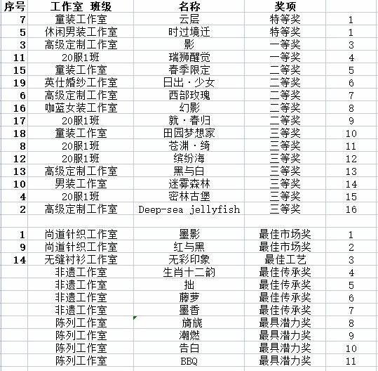 現場展出的27個系列中,其中工作室作品22個,班級學生作品5個,共評出特等獎2個、一等獎2個、二等獎5個、三等獎7個,最佳市場獎2個,最佳工藝獎1個,最佳傳承獎4個,最具潛力獎4個。