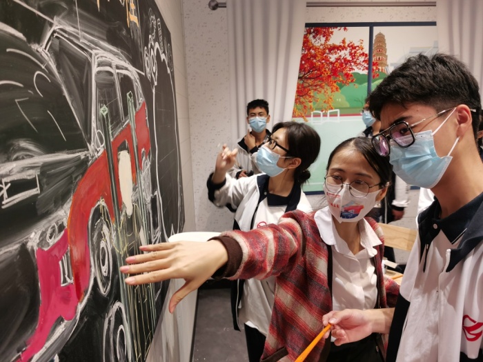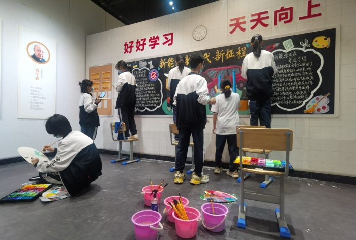 中山市博物館聯(lián)合市教育和體育局籌劃并舉辦“書聲滿香城——中山教育特展”,向公眾展示中山文教歷史,展現(xiàn)香山建縣以來的文化教育成果,助力文化興城。10月19日下午,中山市沙溪理工學校受中山市博物館邀請進行黑板報創(chuàng)作,打造展覽的互動打卡空間。