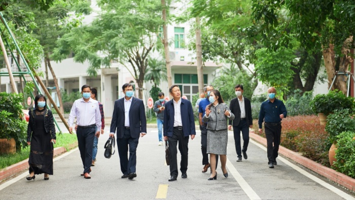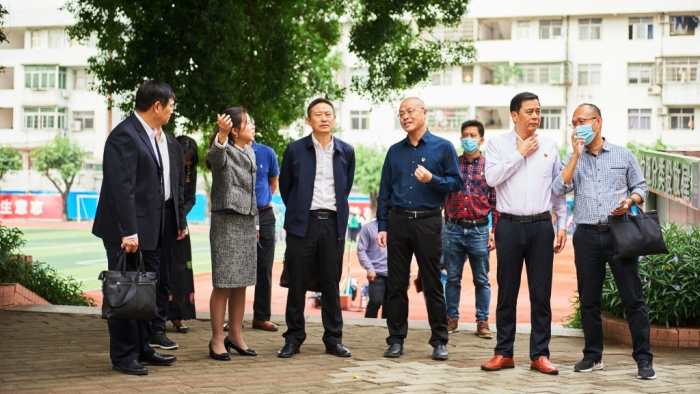 姜術俊一行先后深入學校汽車技術部、創意設計部等實訓場室、學生宿舍、飯堂等地方實地考察,了解學校發展中遇到的困難和存在的短板,邊參觀邊交流意見。