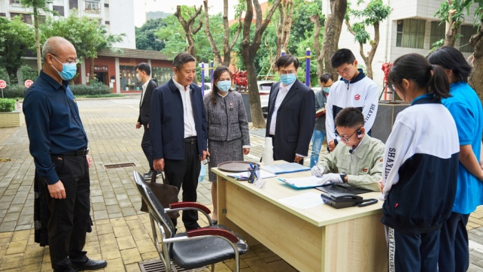 10月19日,中山市教育工委委員、市教育和體育局黨組成員、副局長姜術俊一行到中山市溪理工學校進行調研,深入了解學校發展情況,想方設法共同解決學校在高水平、高質量發展中遇到的困難。市教體局四級調研員黃慶財,高職終科科長湯偉勛,安全保衛科副科長賴欽輝一起陪同調研。學校黨委副書記、副校長盧永輝,副校長葉樹人、楊廷樺、郭冬冬等行政陪同。