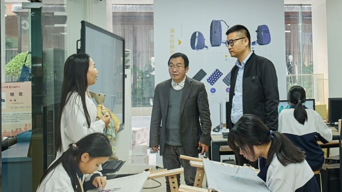 在實地考察兩大專業(yè)群校企合作產教融合實訓室和工作室時,專家組詳細詢問工作室課堂教學和產學研深度校企合作的情況,深入了解學生在工作室參與企業(yè)真實項目運營實踐教學的情況。在考察過程中,馮子川同時詳細介紹學校的發(fā)展歷史、辦學條件、辦學理念、教學管理、校企合作、校園文化建設等方面的情況。在了解到學生得到企業(yè)師傅的專業(yè)指導,學生作品變成企業(yè)產品,最后走向市場成為商品,校企合作、產教融合真正產生效益后,專家組對學校的教育教學和辦學成果表示高度肯定。